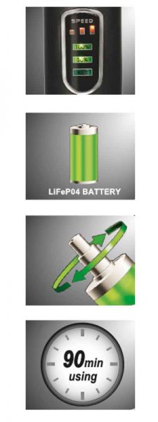 - Lithium-Fe-Po-4 met een 2 maal zo lange levensduur als gebruikelijke accu’s